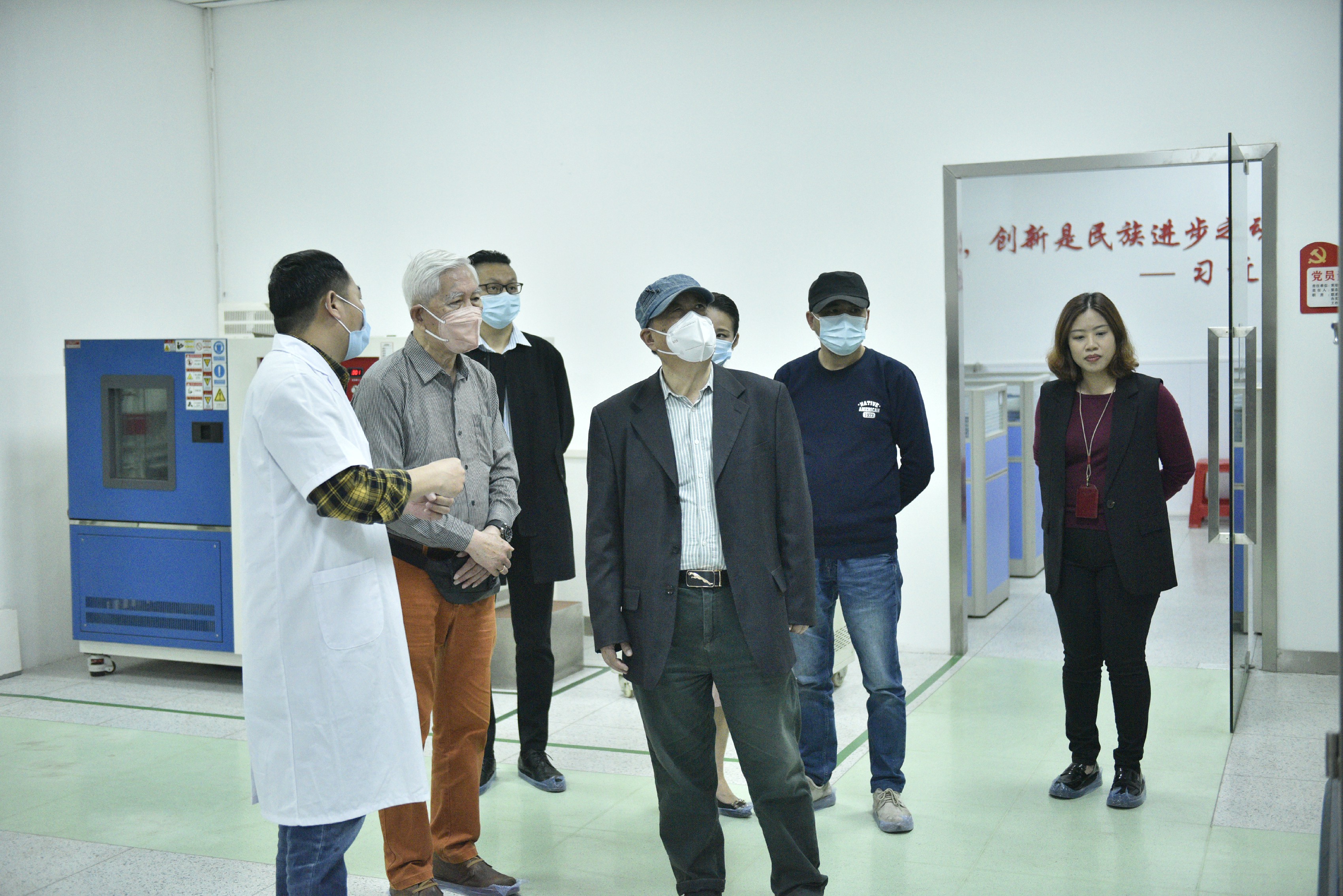 柳冠中教授一行在東箭科技副董事長、總經理羅軍,東箭科技董事、副總經理陳梓佳,東箭科技董事、副總經理夏炎華,東箭科技董事會秘書、副總經理顧玲,東箭科技國際研發部經理楊杰以及東箭科技國內市場部總監熊峰等陪同下,先后參觀公司OE車間、產品實驗室以及黨建展覽館。在參觀過程中,東箭科技科研人員為柳冠中教授一行詳細講解了公司產品的生產流程、技術工藝以及專利技術等情況。